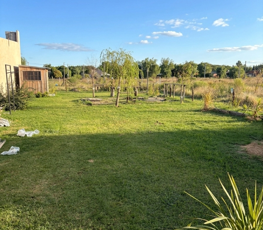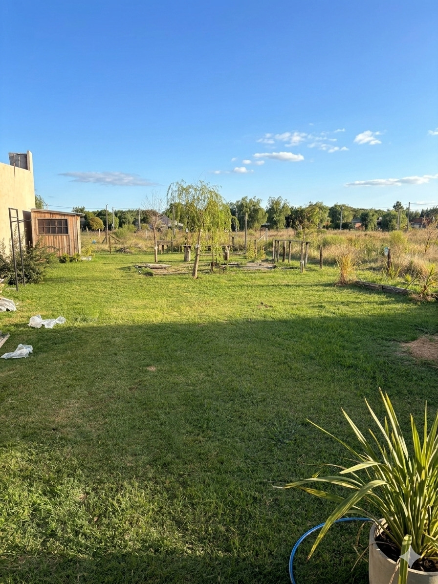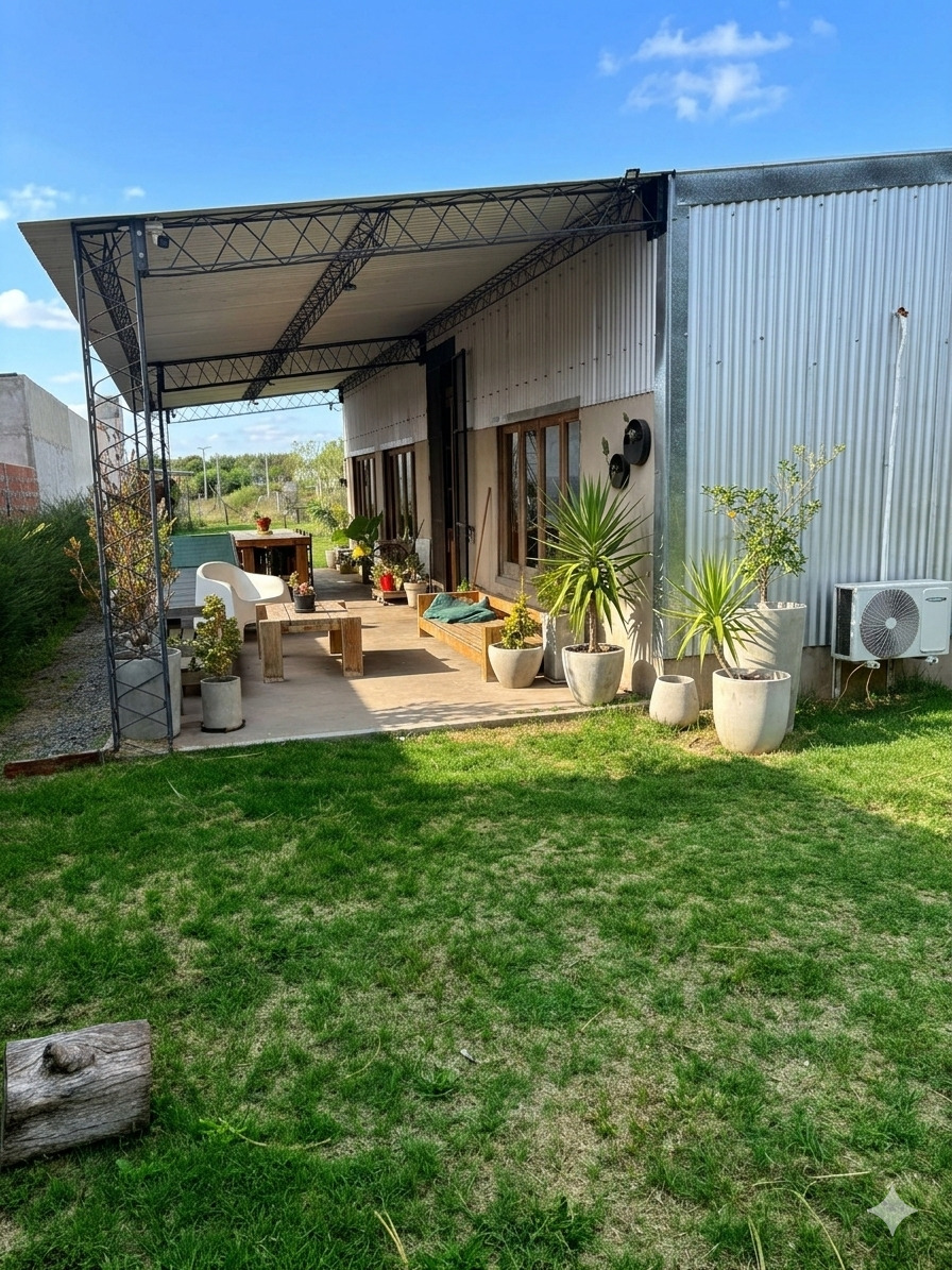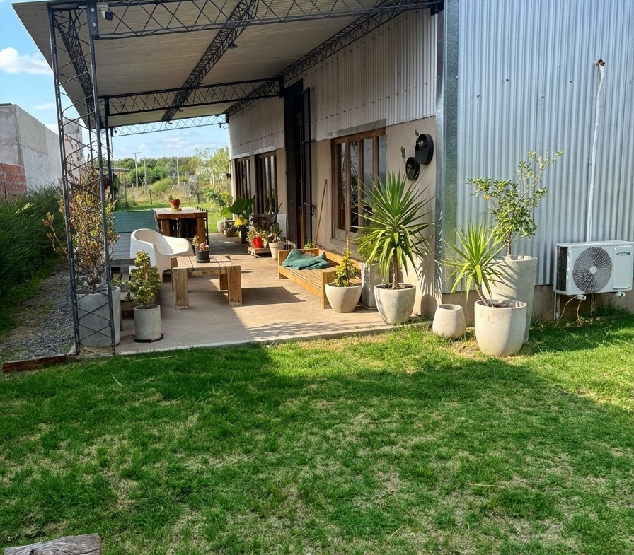 El exterior ofrece un amplio parque en lote de 12 x 48 metros, completamente alambrado estilo campo, con fogonero, pérgola y entrada con tranquera, ideal para disfrutar del aire libre y la tranquilidad del entorno.