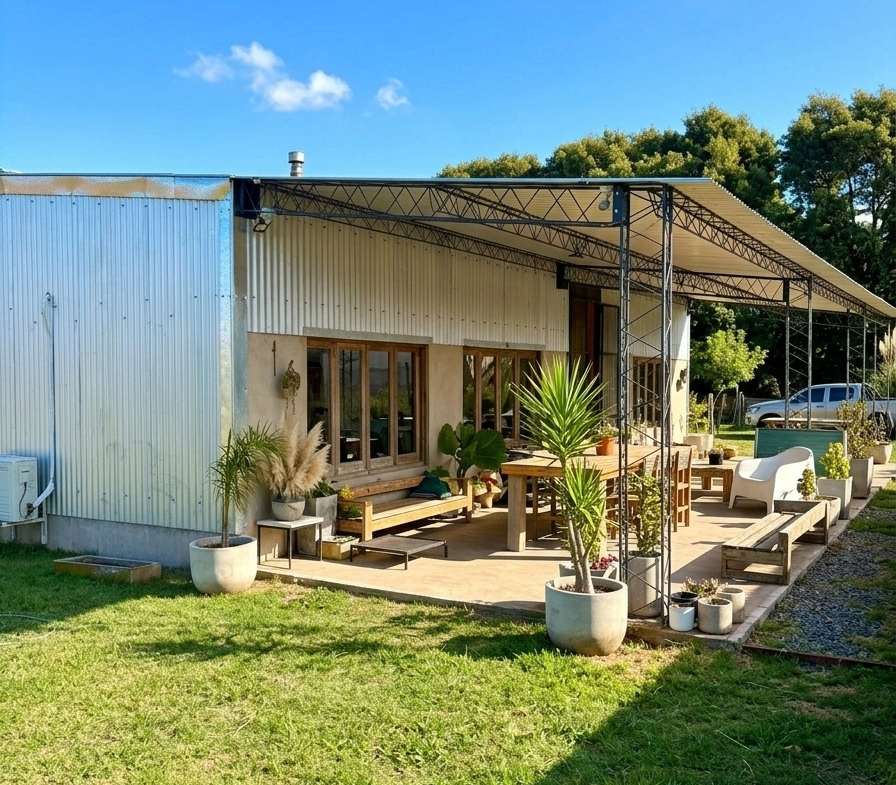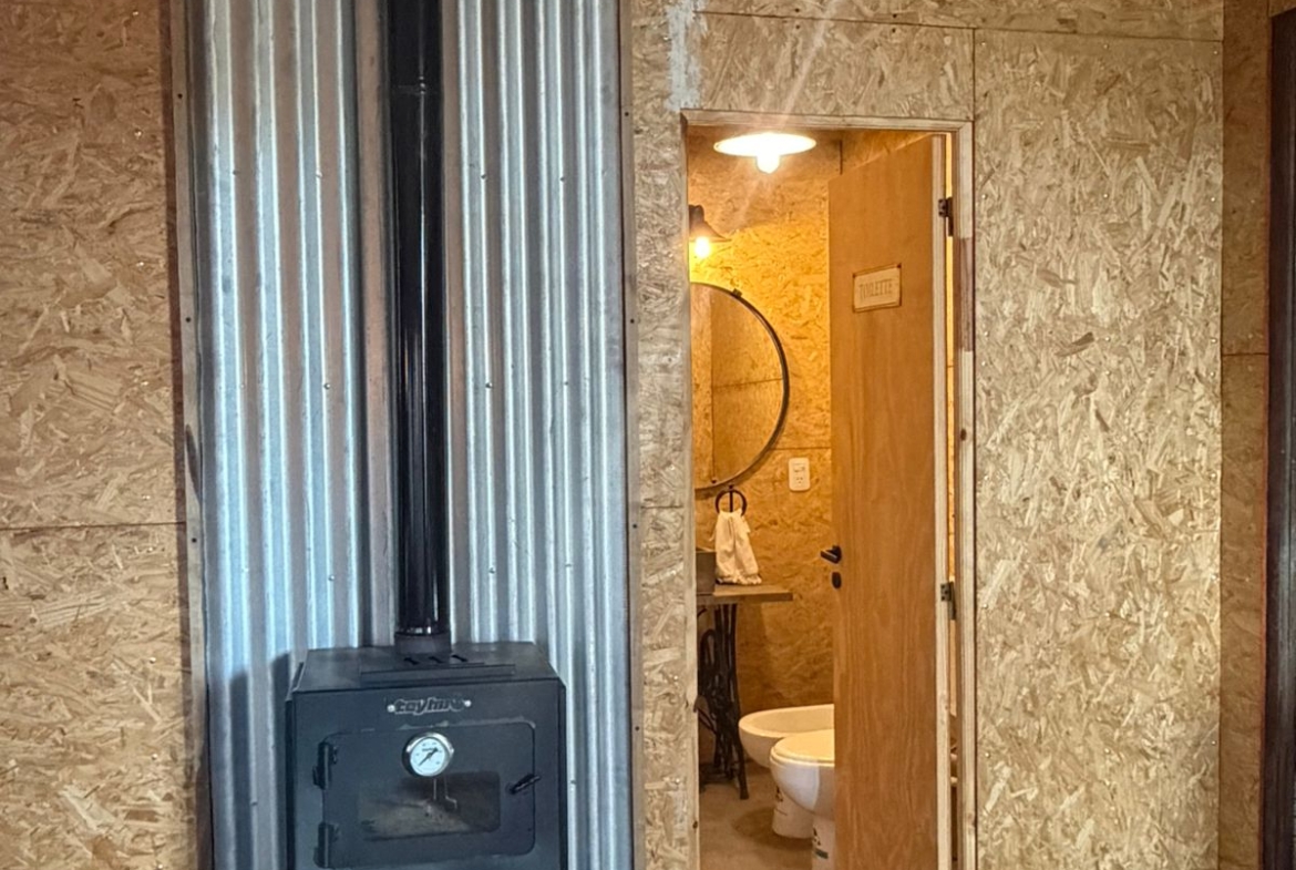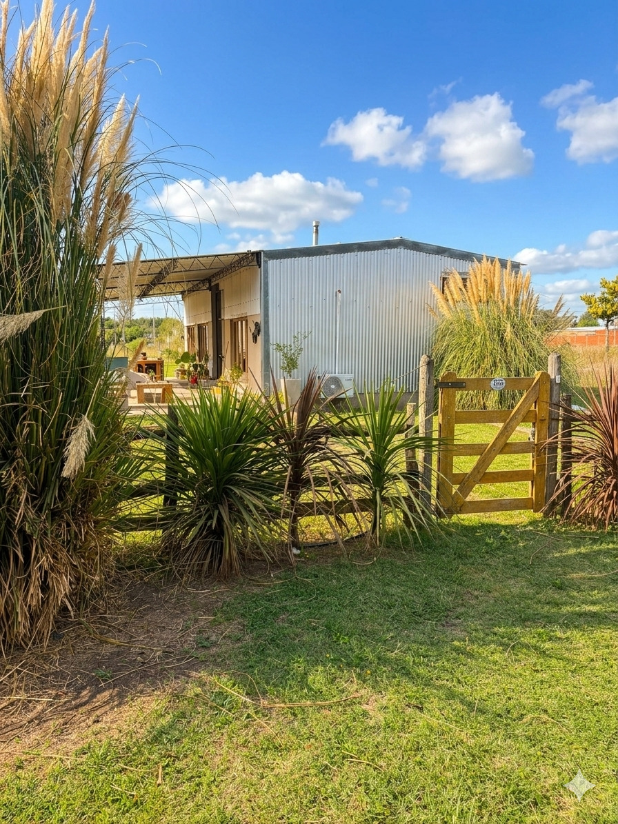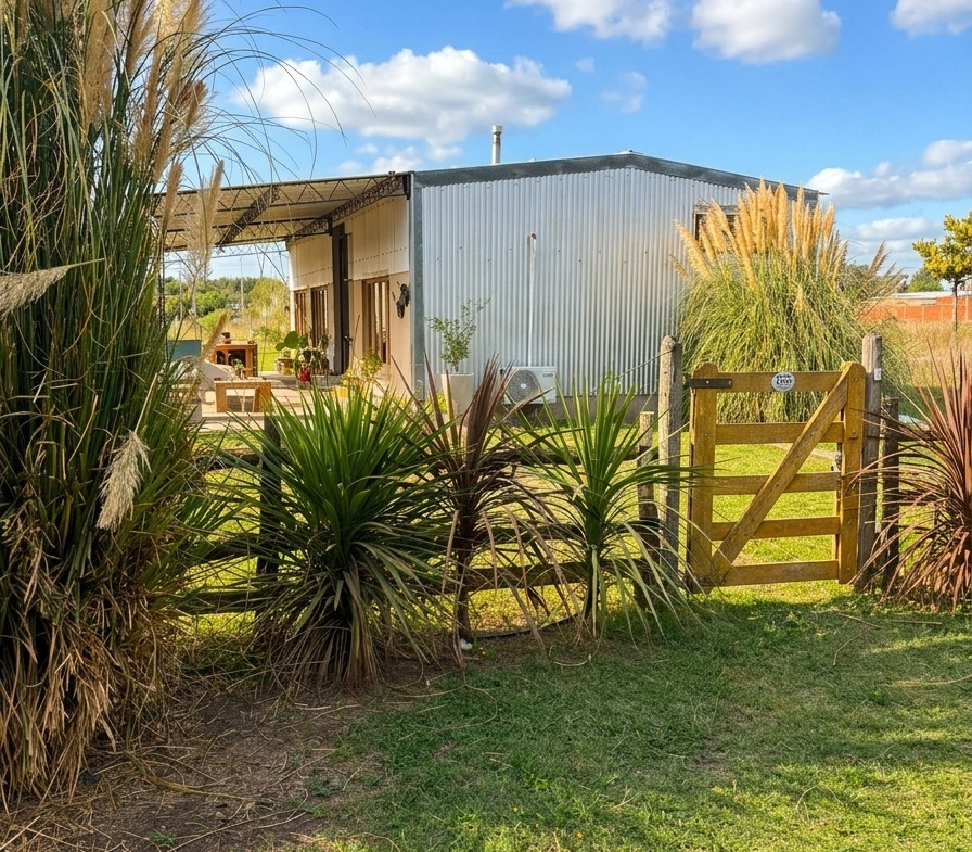La propiedad cuenta con 72 m² cubiertos, 40 m² de galería y 6 m² de galpón de guardado, construida íntegramente con sistema Steel Frame de alta calidad. Su diseño combina comodidad moderna con un marcado estilo rústico, utilizando aberturas antiguas, muebles reciclados y detalles de época que le dan una personalidad única.