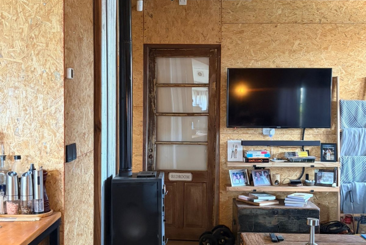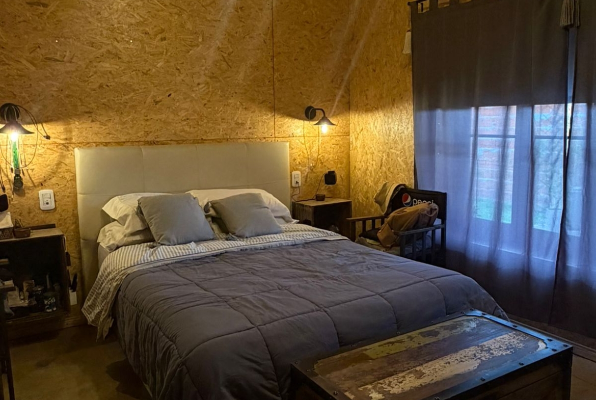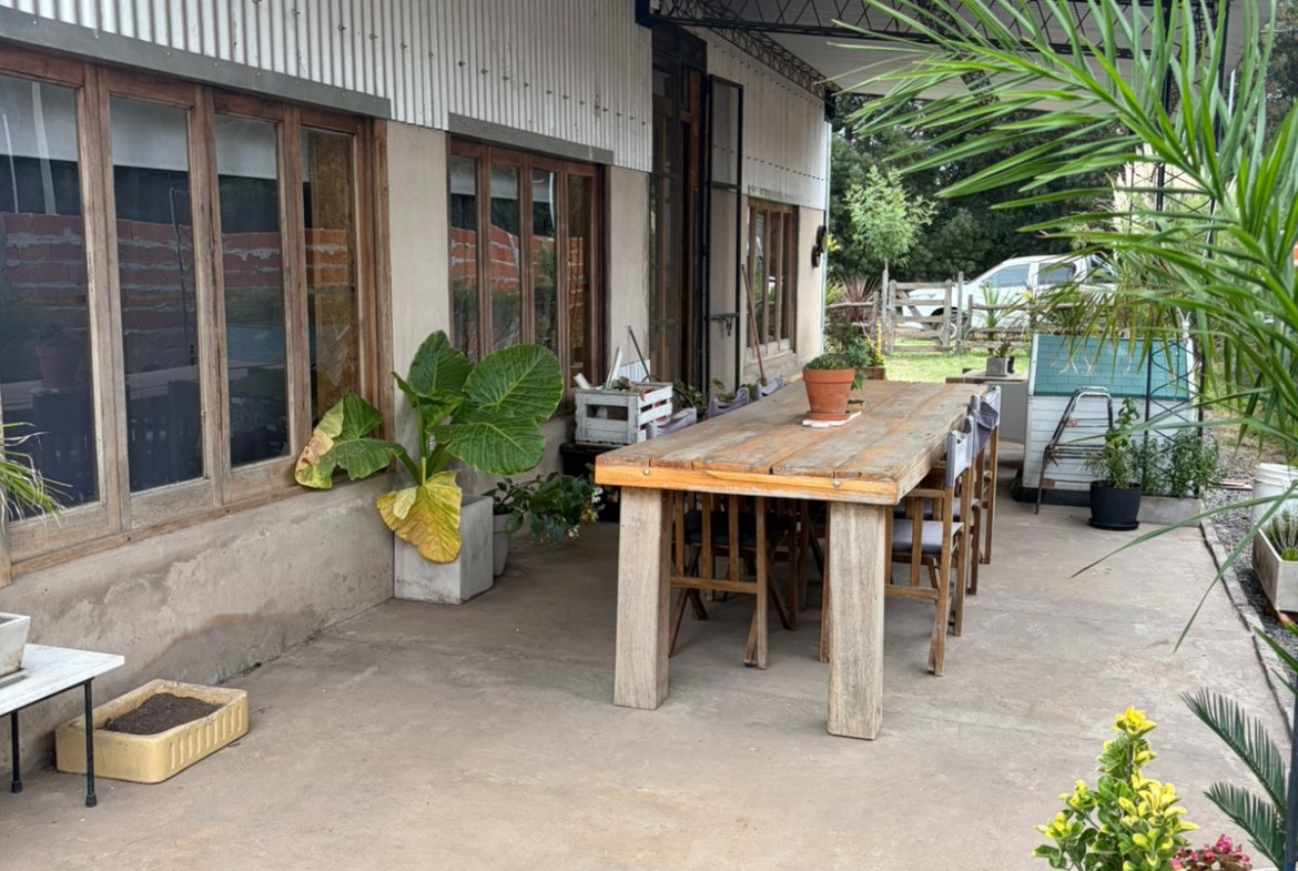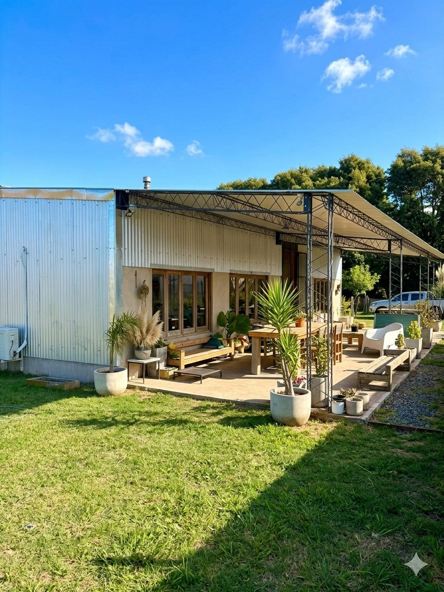 La propiedad cuenta con 72 m² cubiertos, 40 m² de galería y 6 m² de galpón de guardado, construida íntegramente con sistema Steel Frame de alta calidad. Su diseño combina comodidad moderna con un marcado estilo rústico, utilizando aberturas antiguas, muebles reciclados y detalles de época que le dan una personalidad única.