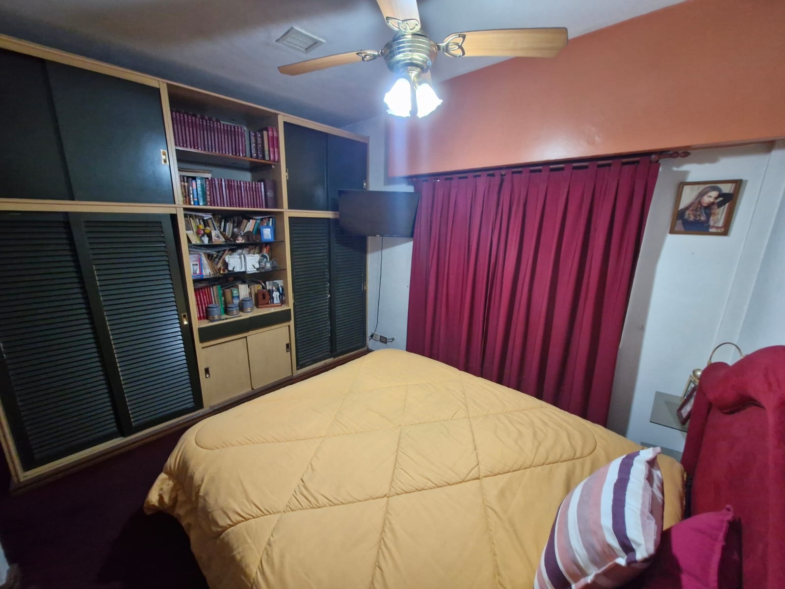 Habitación con placares empotrados, biblioteca y vestidor.